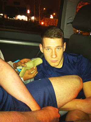 There was a mix up with who was driving to football on monday night which meant 6 of us had to cram into Toms car. Me being smaller than an actual full size human I had to sit on the floor in the footwell surrounded by Jimlad's, Max's and Frank's legs. not the most comfortable journey of my entire life.